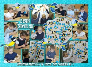 Проектная работа третьеклассников будет долго украшать стены гимназии, напоминая, что птицам нужна наша помощь и забота! Ребята выражают огромную благодарность родителям Елене Николаевне Вьюн и Марине Андреевне Бабой за прекрасные идеи творчества и помощь в их реализации!