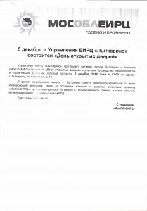 5 декабря в Управлении ЕИРЦ «Лыткарино» состоится «День открытых дверей»