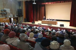 | Перед началом мероприятия в фойе музыкальной школы работали секции представителей «МосОблЕИРЦ» и управляющих компаний города, которые давали краткие консультации собравшимся по интересующим их вопросам. Встреча, уже традиционно, началась с показа фильма о работе Администрации, служб ЖКХ и прошедших культурных мероприятиях за ноябрь 2019 года. Выступления докладчиков и обсуждение актуальных вопросов предваряло вступительного слова Главы города Евгения Серегина, который напомнил собравшимся о текущих работах и перспективах развития городского округа на 2020 год.