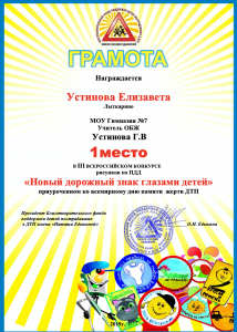 Обучающиеся МОУ гимназии № 7 приняли участие в III Всероссийском конкурсе рисунков по ПДД «Новый дорожный знак глазами детей», приуроченном ко Всемирному дню памяти жертв ДТП. Этот день очень важен, потому что ежегодно по всему миру погибают и получают травмы более миллиона человек