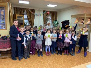 Учащиеся 1 «Б» класса МОУ гимназии №7 вместе со своим классным руководителем Чирковой Е.И. стали участниками программы «Новогодние приключения» Лыткаринского краеведческого музея.