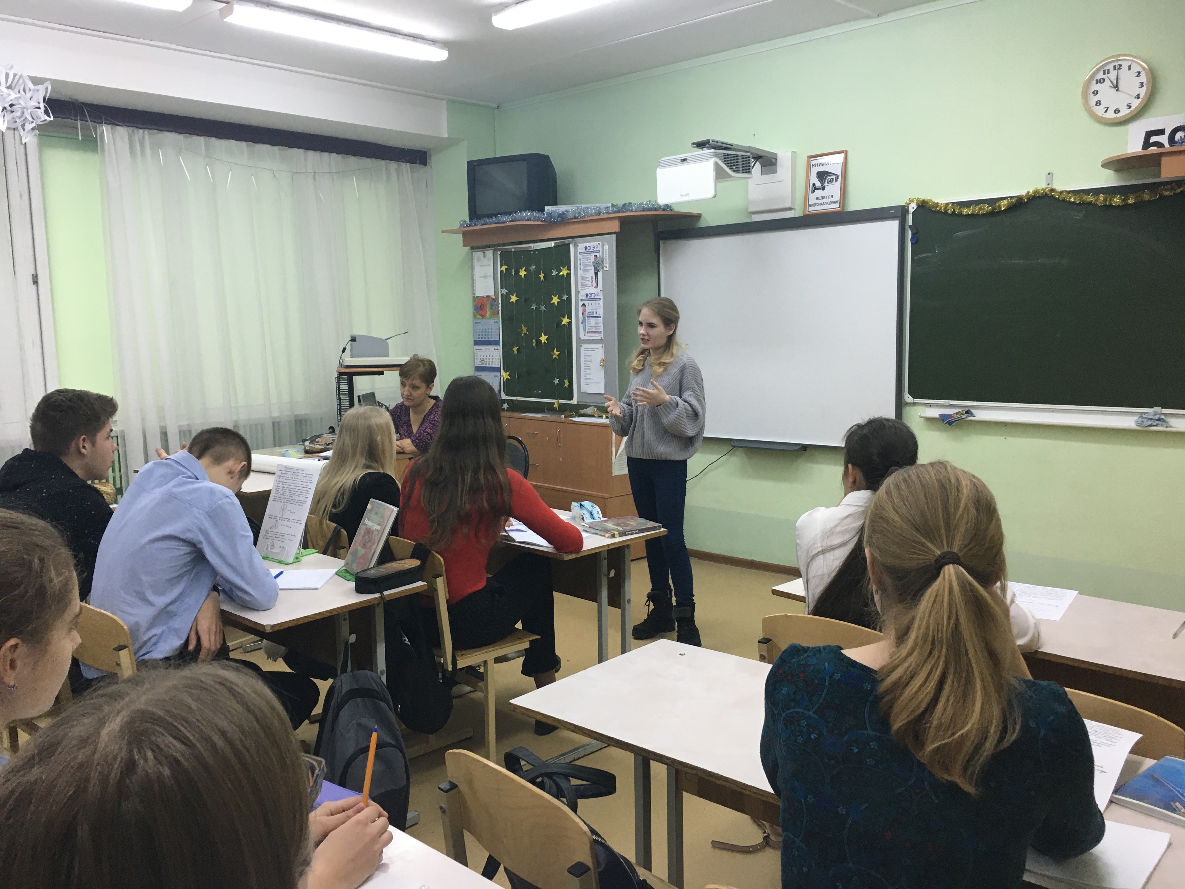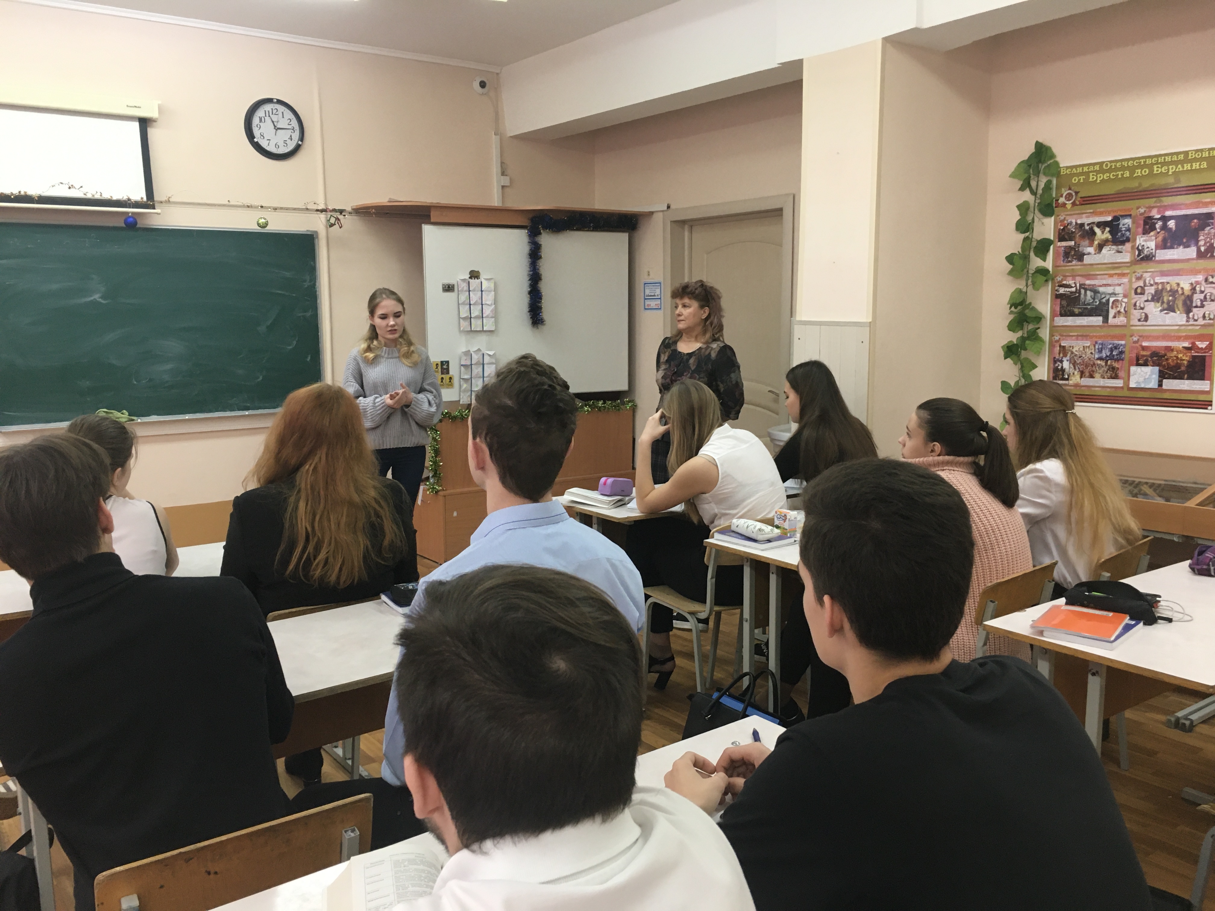 19 декабря в рамках акции «100 баллов для Победы» в МОУ гимназии №7 прошла встреча учащихся 11-х классов с выпускницей прошлого года, студенткой МГЮА им. Кутафьина Меркуловой Екатериной.