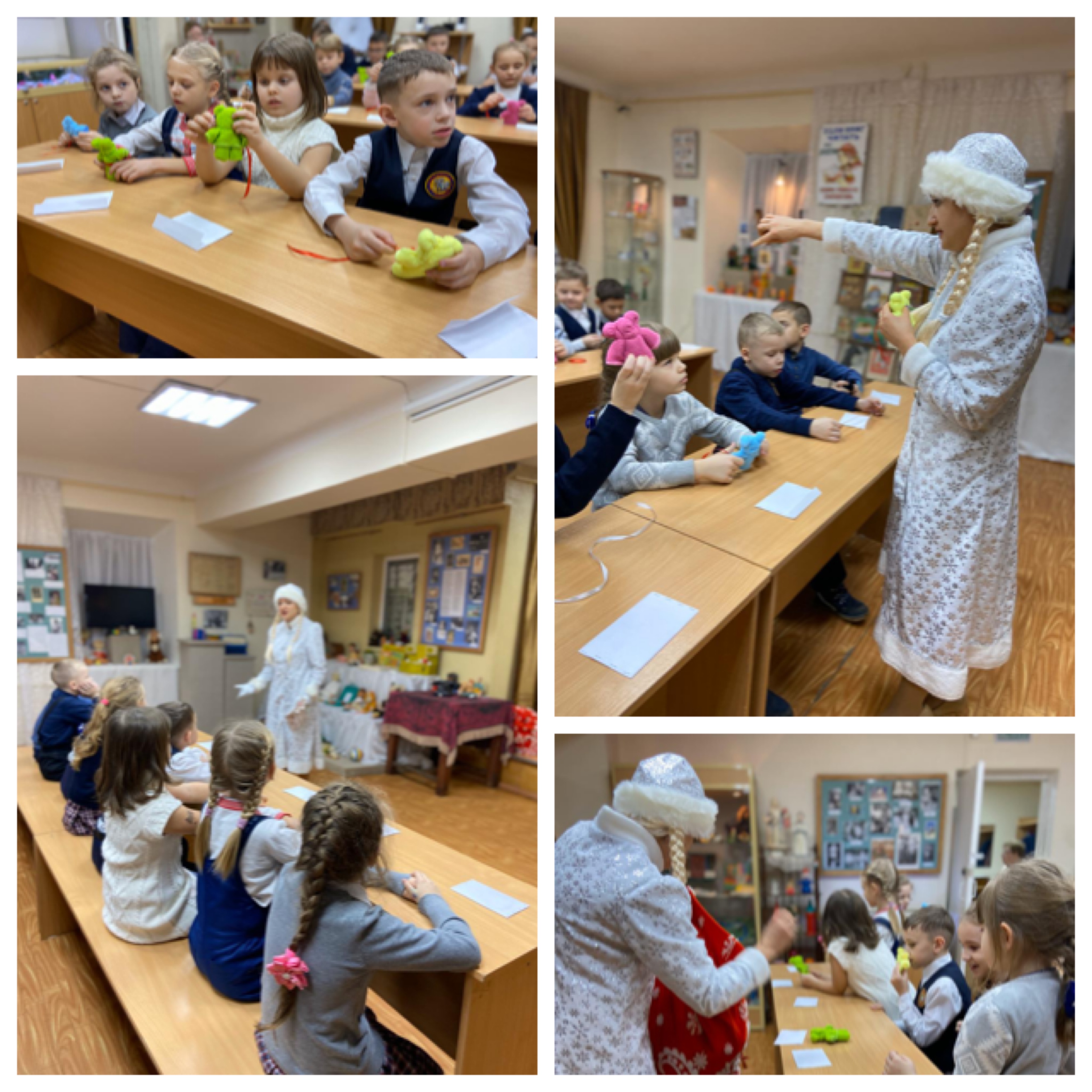 | В ходе программы ребята узнали историю возникновения традиций празднования Нового года, ознакомились с экспозицией ёлочных игрушек, встретились со Снегурочкой и её помощником – Медведем. Дети пели песни, читали стихи, отгадывали загадки, играли. Сказочные персонажи порадовали детей интересным мастер – классом по изготовлению игрушки – мягкого медвежонка. Ребята получили в подарок не только игрушку, но и праздничное настроение.