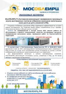 МосОблЕИРЦ ТУ «Лыткарино» рекомендует своевременно производить оплату выставленных счетов