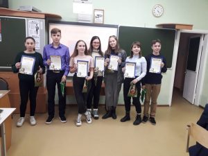 | Сборные команды из всех образовательных учреждений сразились между собой в интеллектуальной битве. Темой игры стал юбилей Московской области. Игра состояла из пяти раундов разной степени сложности. Командам была дана возможность проявить себя на разных этапах игры. В итоге выделилась команда- победитель и призеры. Все участники были отмечены грамотами и памятными призами. Победителем от МОУ гимназии №7 стал Гаврюшов Егор, а призерами стали Сухова Ксения и Кондратьева Елизавета. Поздравляем ребят и желаем дальнейших успехов.
