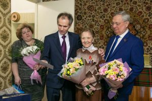 С круглой датой ветерана лично поздравили глава городского округа Лыткарино Евгений Серегин и председатель Совета депутатов города Василий Дерябин, вручив ей поздравительное письмо от Президента России Владимира Владимировича Путина, Знак Московской областной Думы «За службу закону» и памятные подарки от Губернатора Подмосковья Андрея Юрьевича Воробьёва.