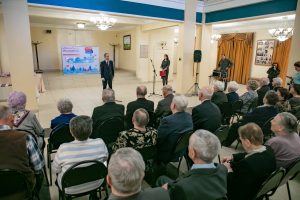 Сегодня приглашенным гостям уже около восьмидесяти, девяноста лет. Они скромно улыбаются друг другу, и трудно поверить, что 75 лет назад эти люди видели войну своими глазами. Одни воевали и трудились без отдыха ради общей Победы, другие перенесли тяготы войны, будучи детьми. Но несмотря на возраст и пережитое, их сердца полны огня. Ветеран-лыткаринец Евграф Александрович Лапко, служивший в годы войны радистом, вдохновенно прочел стихотворение Владимира Маяковского «Необычайное приключение».