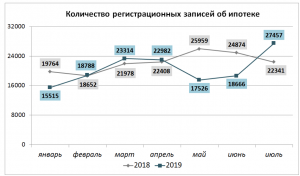 | Управлением Росреестра по Московской области в июле 2019 года внесено в Единый государственный реестр недвижимости (ЕГРН) 27 457 записей об ипотеке. Это на 47,1 % больше, чем в июне текущего года, когда в ЕГРН было внесено 18 666 записей об ипотеке.
