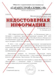Сообщаем, что ООО «Гарантстрой-сервис+М» подал заявление в Арбитражный суд Московской области и на сегодняшний день заявление находится на рассмотрении. Дата заседания не определена.
