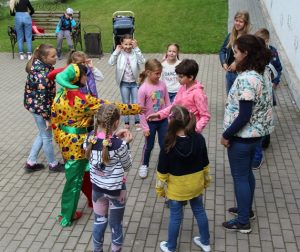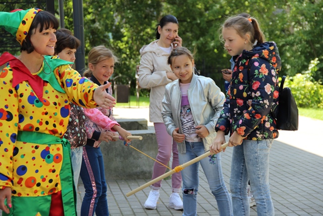 | Уже на входе в парк усадьбы «Лыткарино» гости ощущали веселую, праздничную атмосферу под звуки музыки. На площадке усадебной террасы парка всех посетителей встречал веселый скоморох, который рассказал о старинных русских играх, вовлекая детей и взрослых в веселое действо. Их ждали разнообразные игры — разговорные, обрядовые, подвижные, проверяя на ловкость, внимательность, выносливость и смекалку. Русские народные игры, загадки, сказки не придумывались просто так, из ничего, в них отражалась жизнь народа, его быт и обычаи, окружающая природа.