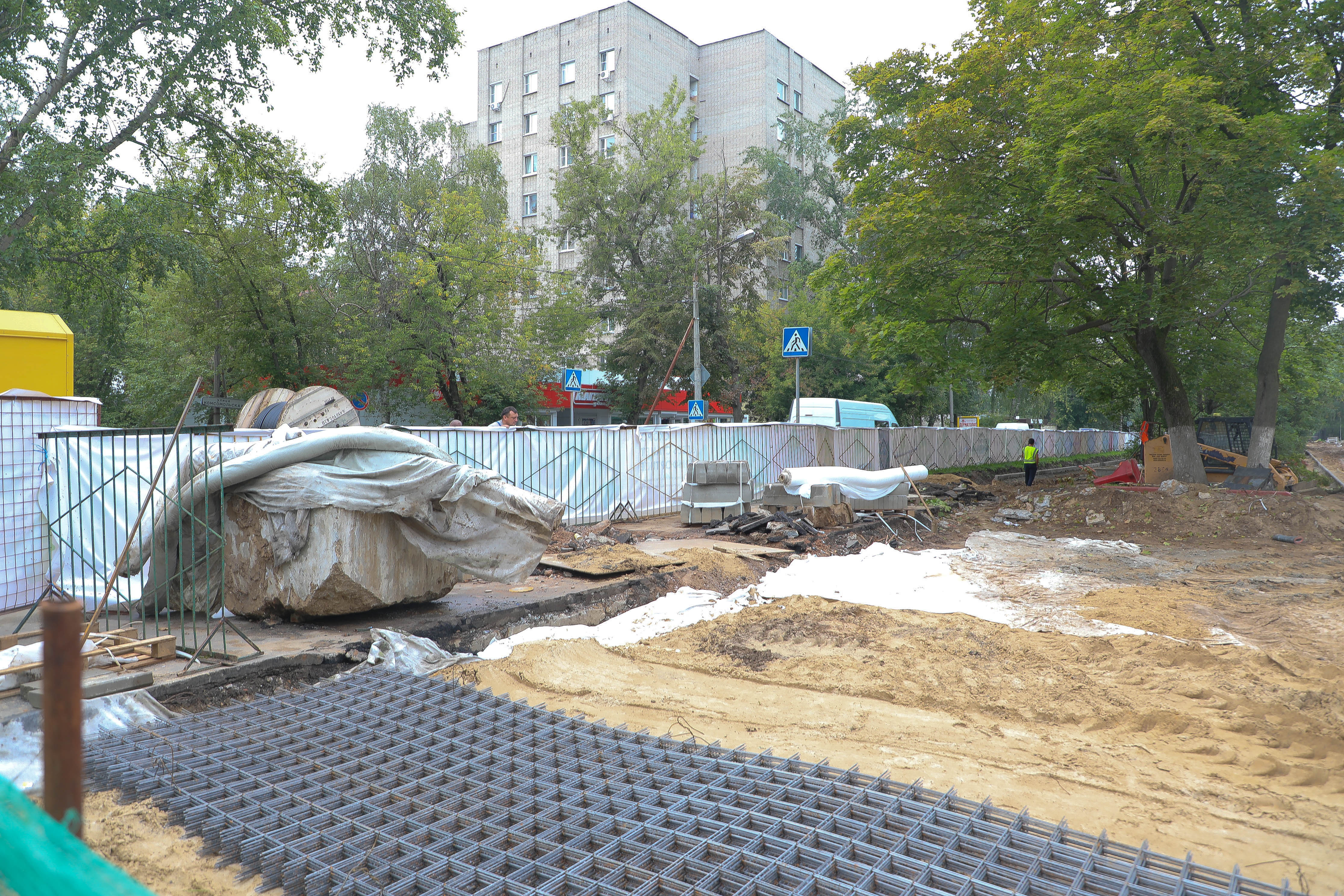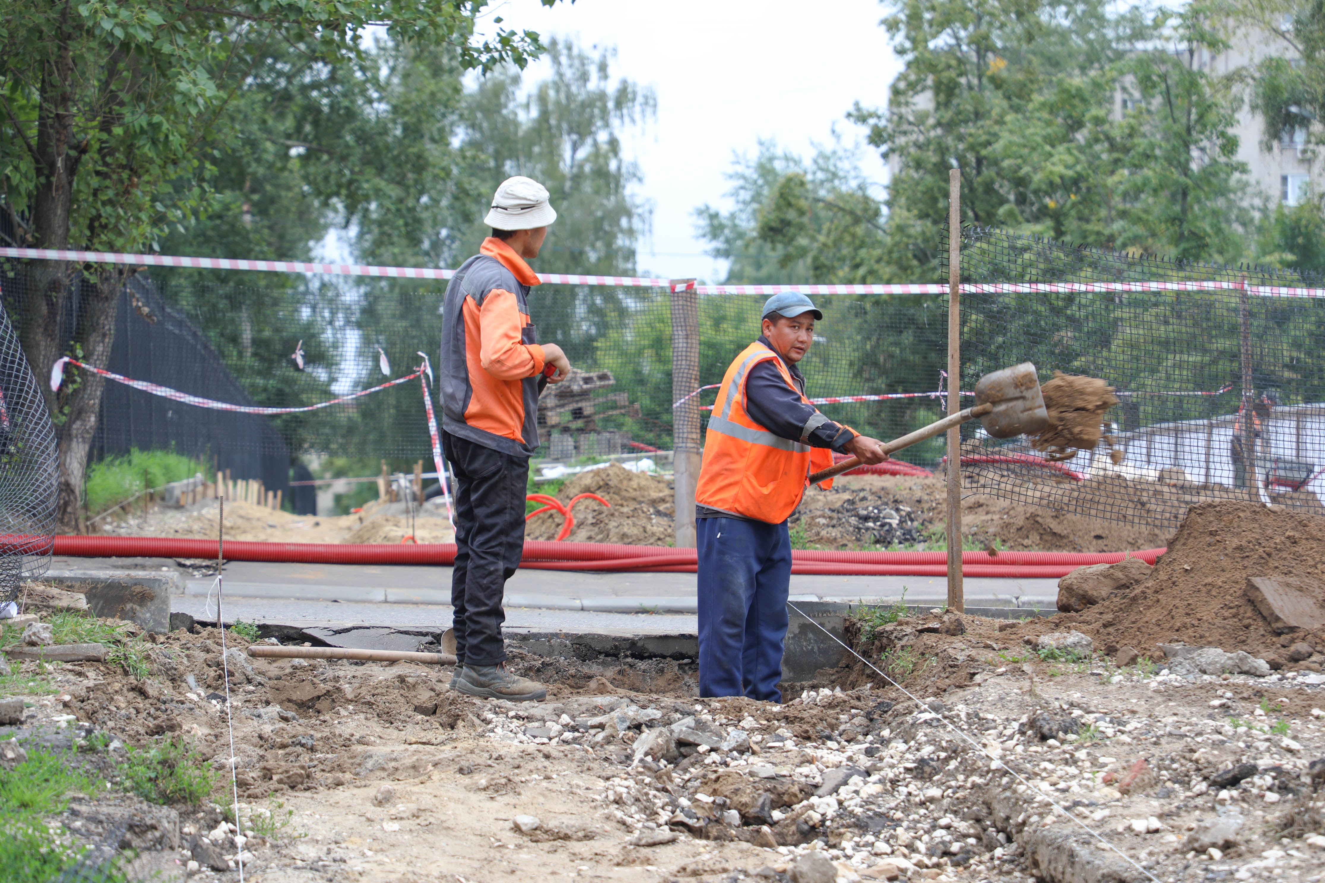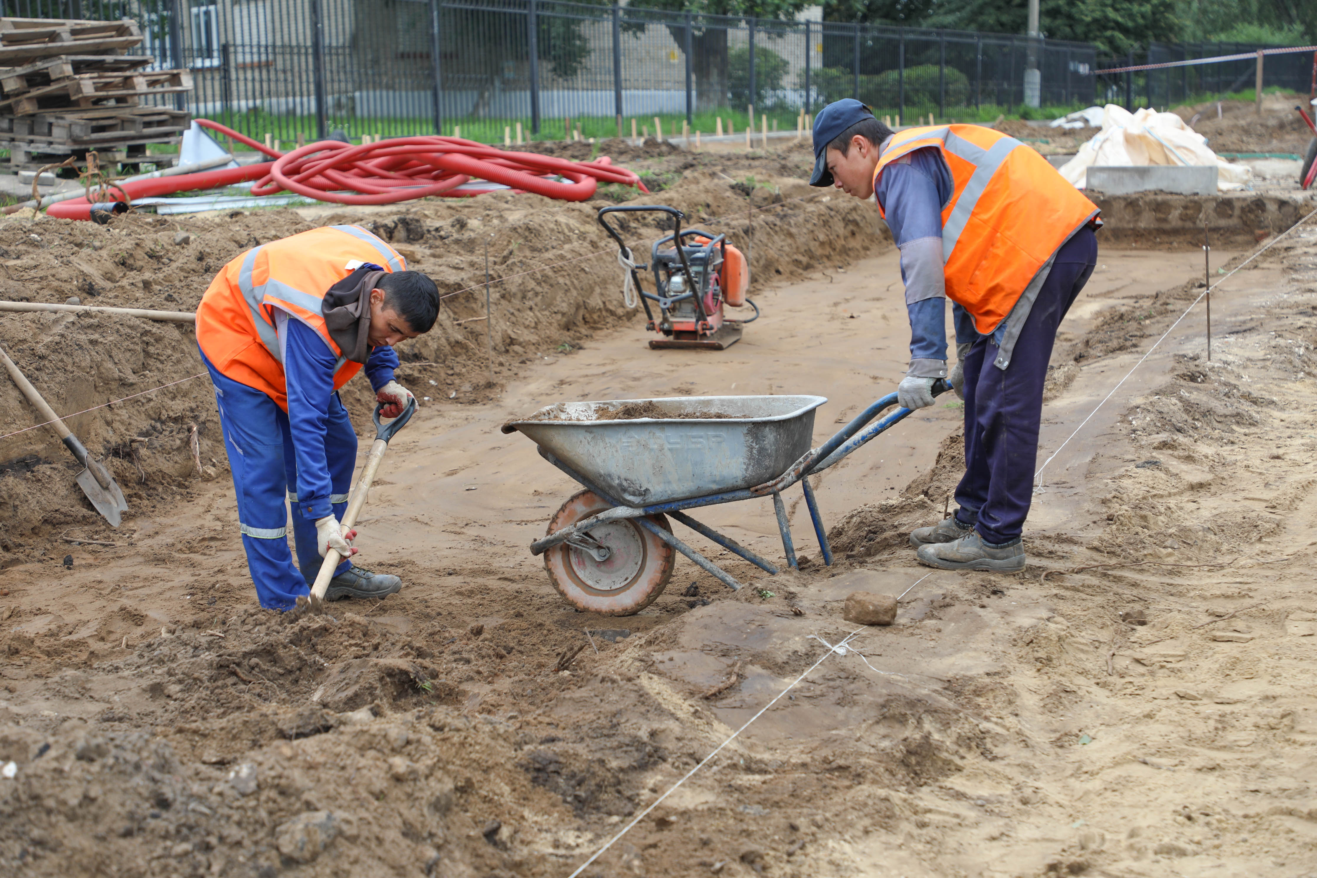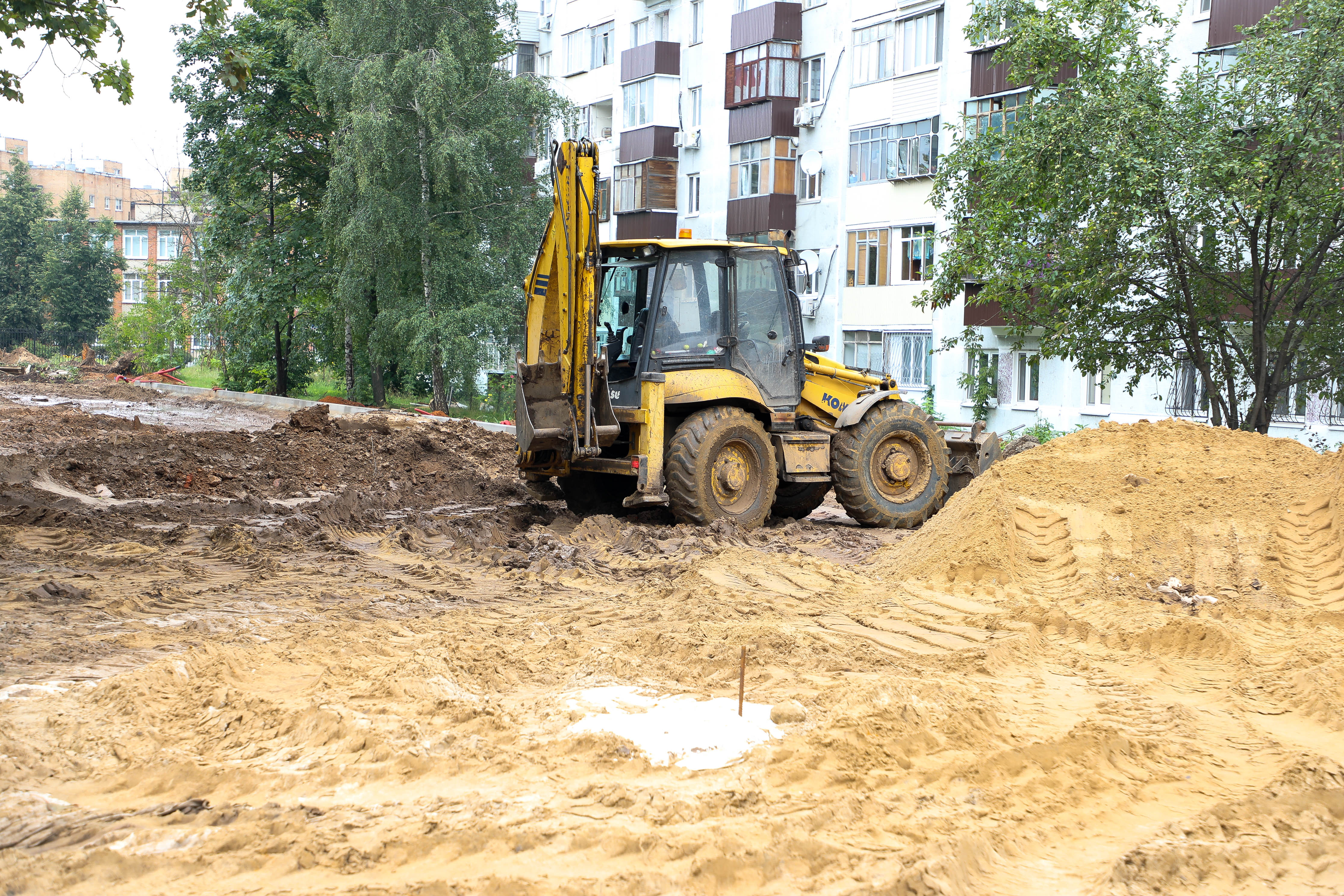 В активной стадии работы по созданию новой аллеи на улице Спортивная — подрядная организация подготавливает площадку для будущего мощения пешеходного тротуара.