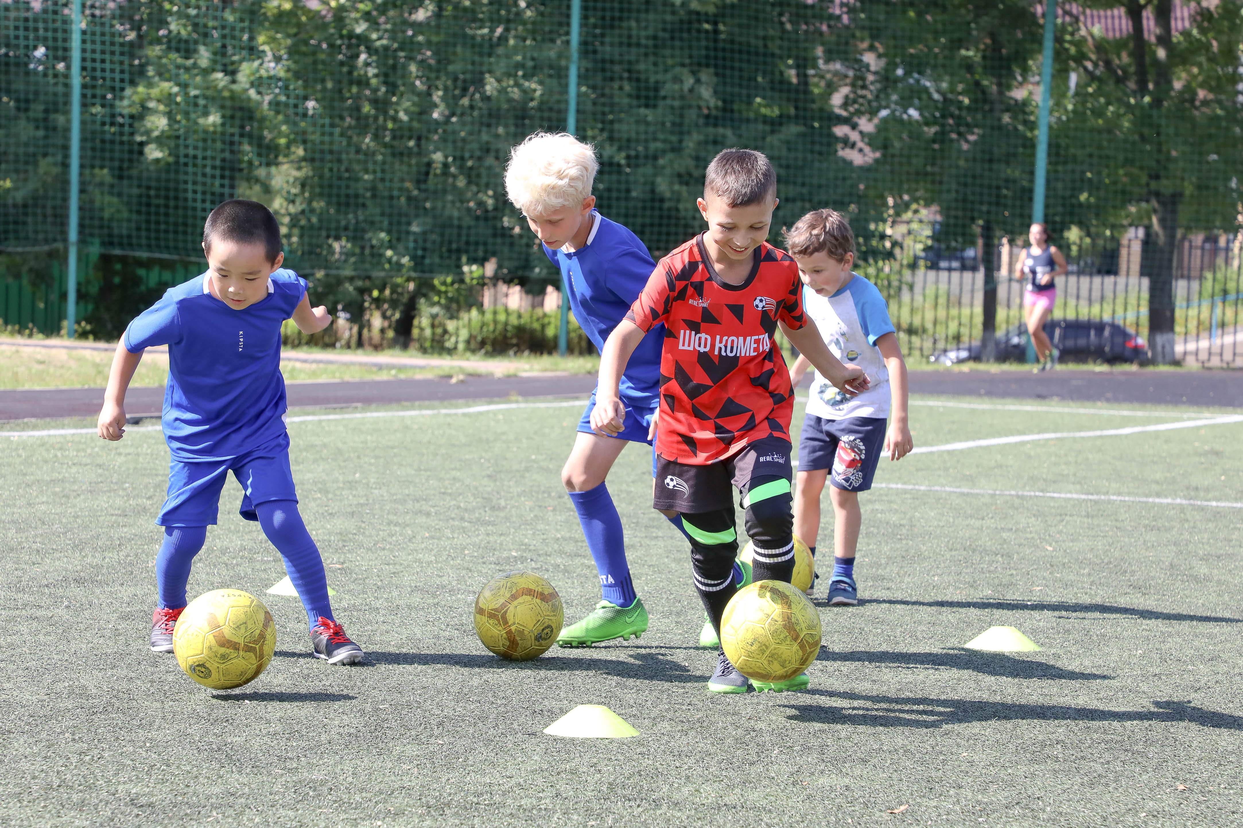 | 7 июля на поле стадиона школы №5 маленькие спортсмены учились владеть мячом, разучивали технику и различные игровые приемы. Также под наблюдением тренера ребята соревновались в эстафетах на быстроту и выносливость. В конце тренировки дети разделились на команды и провели настоящий футбольный матч. Подобные мероприятия бесплатные и для всех желающих. По словам директора СК «Самбист» Михаила Карузина, дети с радостью посещают спортивные тренировки и соревнования, особенно когда они проходят на свежем воздухе.