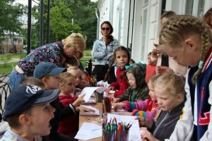 | 3 июля в парке усадьбы «Лыткарино» состоялось занятие для детей и их родителей – «Как устроен русский дом». В форме игры участники мероприятия окунулись в историю крестьянского быта и узнали об устройстве избы и старинных предметах обихода. На плакате они увидели, на какие части делилась изба, где располагалась женская и мужская половины, какую роль играли печь и красный угол. С помощью клея, ножниц и цветных карандашей посетители смогли воссоздать бумажный макет русского жилища, где каждый предмет имел свое место и предназначение.