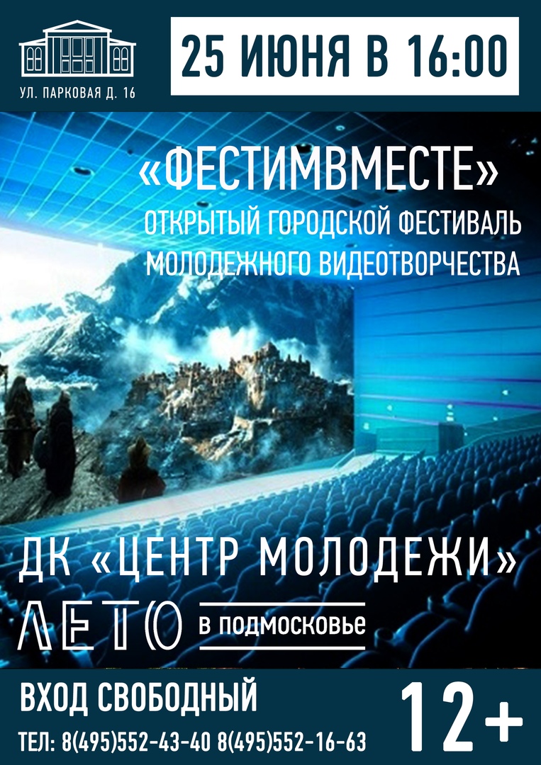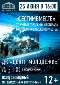 25 июня в 16.00 в ДК «Центр Молодежи» пройдет Открытый городской фестиваль молодежного видеотворчества «ФестимВместе».