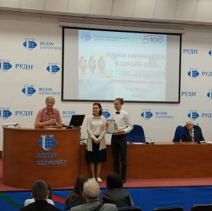 Учащиеся 9 и 10 классов МОУ гимназии №7 приняли участие во Всероссийском конкурсе школьных проектов для учащихся старших классов г. Москвы и Московской области «НАУКА НАЧИНАЕТСЯ В ШКОЛЕ», который прошел в Российском университете дружбы народов.