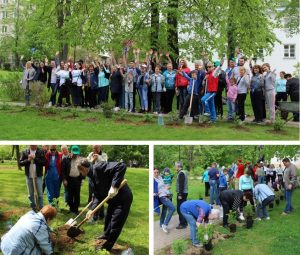 | 11 мая в парке усадьбы «Лыткарино» прошла акция «Лес Победы». Сотрудники музея, представители общественных организаций, учреждений культуры и образования, Совета депутатов, Администрации вместе с Главой г.о.Лыткарино Е.В.Серёгиным высадили аллею от памятника А.И. Чернышеву до солнечных часов. Активные лыткаринцы высадили 40 кустов белого и розового шиповника.