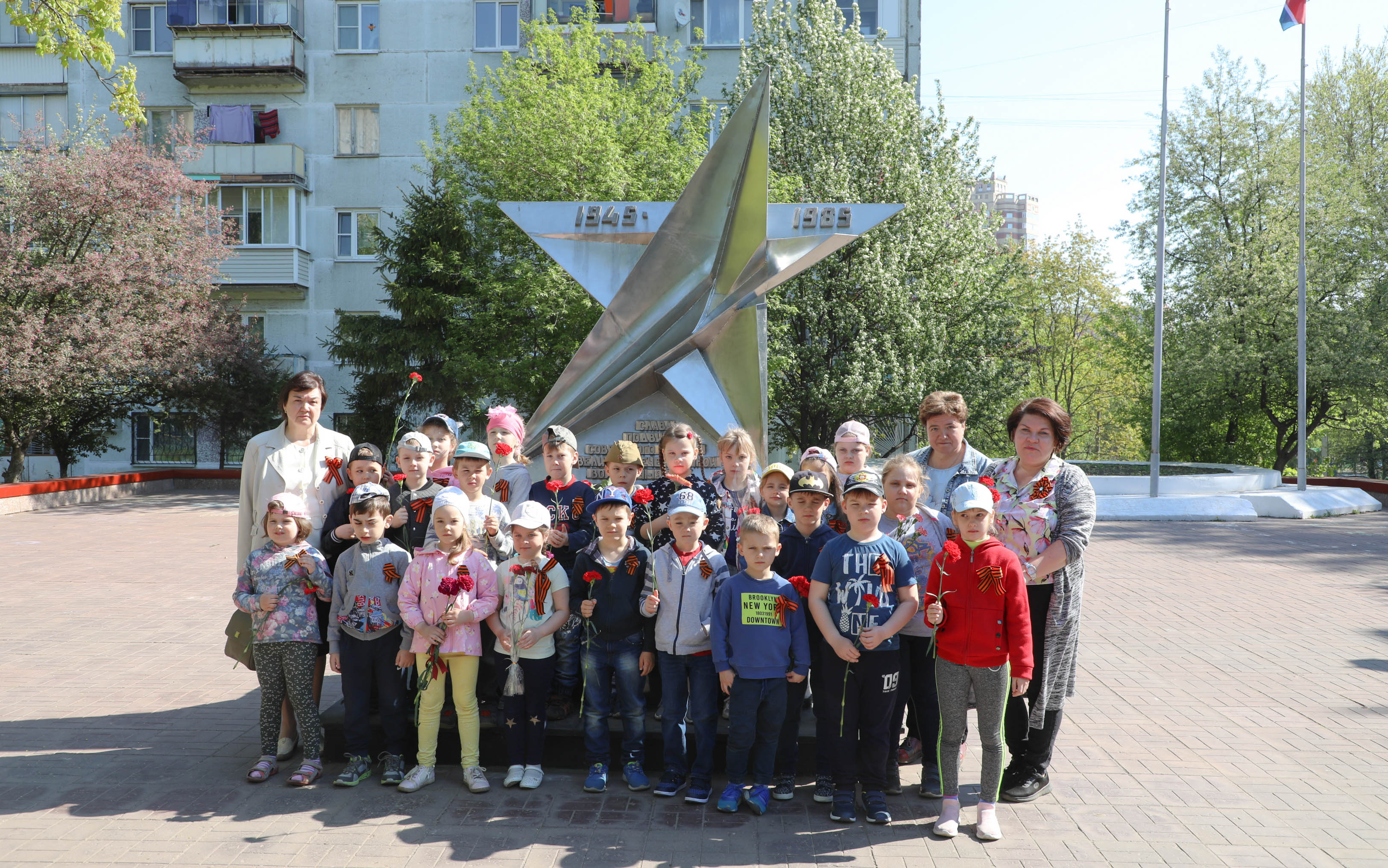 | Также дети дошкольных учреждений участвовали в церемонии возложения цветов к памятникам «Звезда израненная», «Защитникам Отечества» и «Солдат», который находится на территории Гимназии №1.