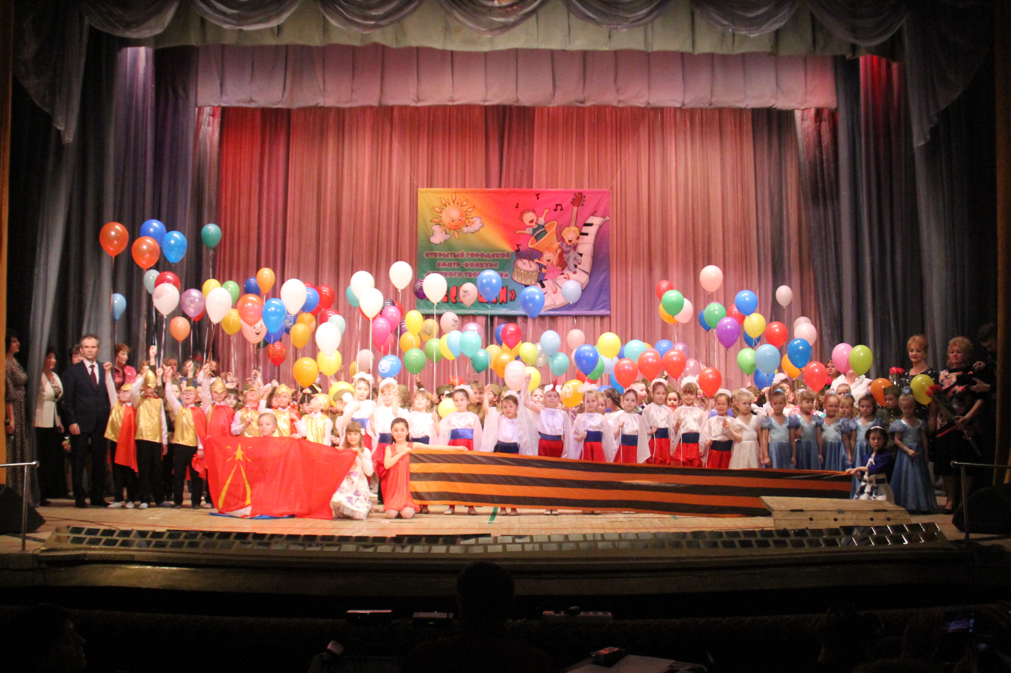 | 20 апреля во Дворце Культуры «Мир» прошел второй открытый городской смотр-конкурс детского творчества «Веснушки». В конкурсе приняли 175 детей, представлявших творческие коллективы 16-ти детских садов. В этом году конкурс был посвящен празднованию 70-летия Победы. Танцы и песни в исполнении детей невероятно тронули зрителей, родителей и Главу города Евгения Серёгина, который провел торжественную церемонию награждения руководителей и музыкальных работников учреждений дошкольного образования. В финале конкурса все участники приняли участие в акции «Вместе! За Победу!». Далее…