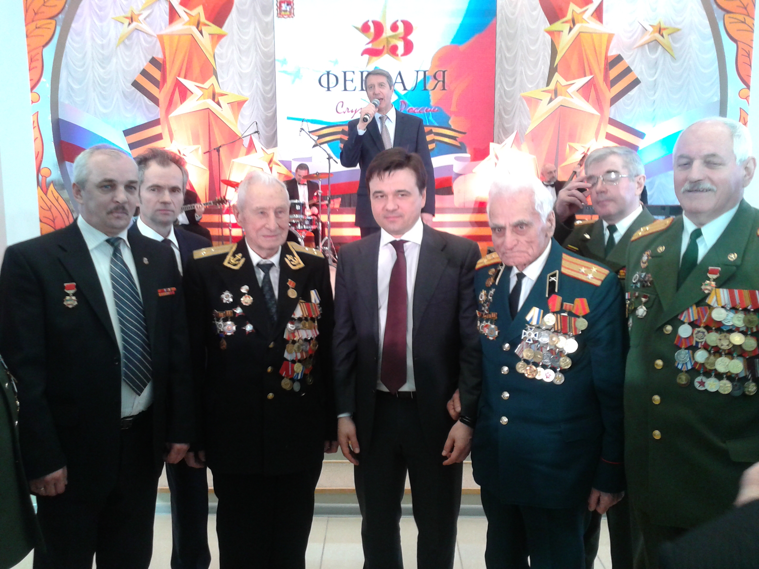 Временно исполняющий обязанности губернатора Московской области Андрей Воробьёв поздравил ветеранов Великой Отечественной войны, а также боевых офицеров и участников локальных военных конфликтов: «Наши дорогие ветераны, участники боевых действий, господа офицеры! В преддверии очень значимого, по большей части мужского праздника, мы собрались в этом просторном зале для того, чтобы чествовать наших ветеранов, людей которые защищают нашу Родину. Хочу сказать вам слова благодарности за ваш героизм и мужество. Я хочу поздравить всех присутствующих с наступающим Днём защитника Отечества. Желаю вам, вашим семьям, боевым соратникам, здоровья, бодрого духа и, самое главное, успехов на вашем жизненном пути. Поздравляю всех с праздником и желаю всего самого доброго».