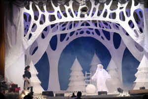 Юным гостям и их родителям было показано новогоднее представление, в котором могли участвовать и сами ребята. А в фойе в это время своих маленьких друзей ожидала главная новогодняя красавица и сладкий новогодний подарок.