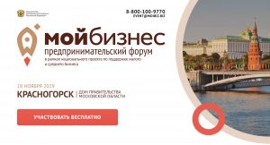 | 18 ноября 2019 года в Красногорске, в Доме Правительства Московской области, пройдёт бесплатный предпринимательский форум «Мой бизнес». Мероприятие, которое соберёт на одной площадке представителей бизнес-элиты, начинающих предпринимателей, руководителей и ведущих экспертов профильных министерств и ведомств, состоится в рамках национального проекта «Малое и среднее предпринимательство (МСП) и поддержка индивидуальной предпринимательской инициативы».