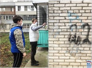 Лыткаринские Молодогвардейцы и члены партии Единая Россия устранили надписи с рекламой наркотических средств