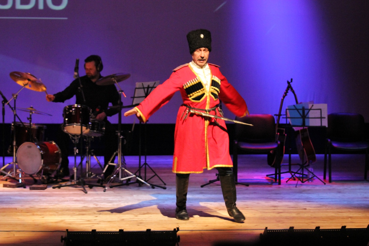 | Программа оказалась интересной и разнообразной. Звучали музыкальные композиции таких известных исполнителей, как Guns N’Roses, Linkin Park, Cranberries, Адель и многие другие. Особенное удовольствие зрителям доставили соло, сыгранное на барабанах и неожиданная казачья лезгинка.