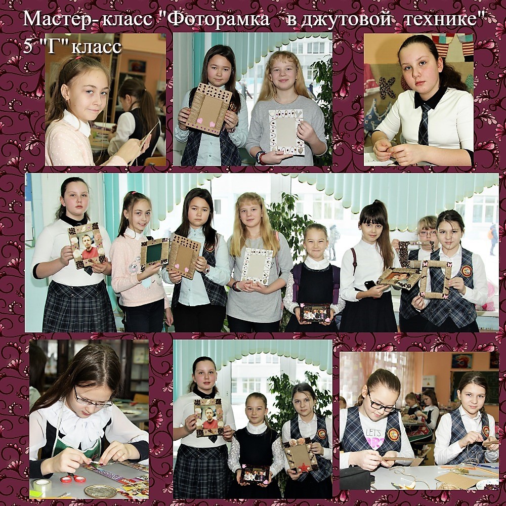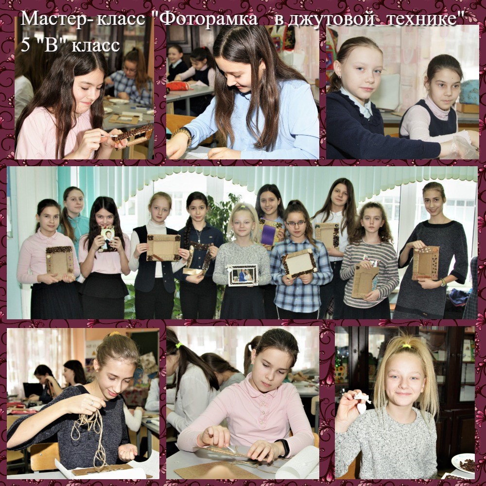 В 5-х классах МОУ гимназии №7 был проведен мастер-класс для девочек «Фоторамка в джутовой технике». Занятие с пятиклассниками провела учитель технологии Ануфриева Е.А. В процессе работы каждая девочка изготовила оригинальную рамку для фотографии, которая будет отличным