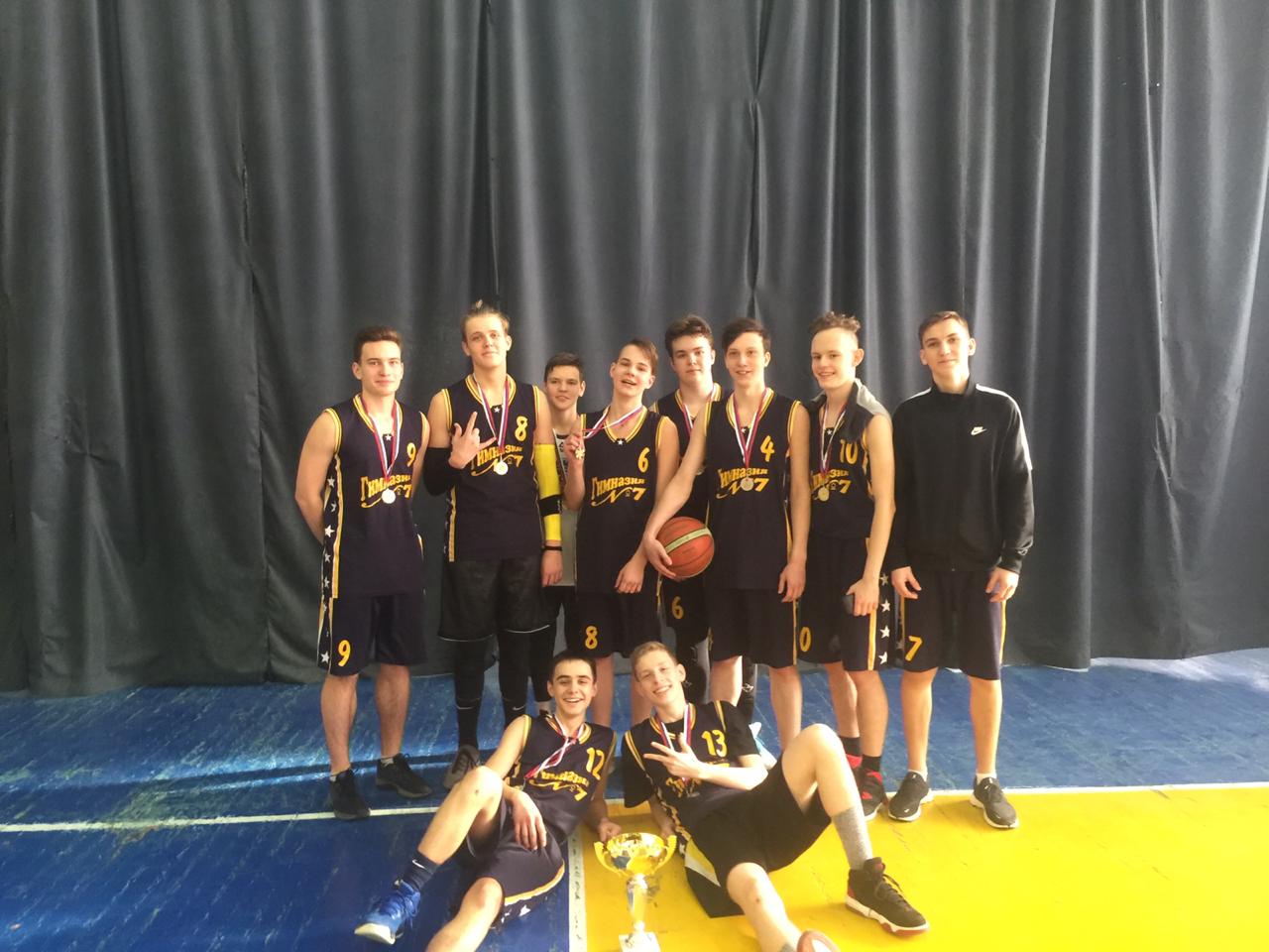 19 февраля 2019года в СК «Кристалл» проходили городские соревнования по баскетболу среди юношей 9-11 классов. Сборная команда МОУ гимназии №7 заняла 2 место. Поздравляем ребят с заслуженной победой: Бондарь Егора — капитана команды, Заводского Антона, Сергея, Васина Василия, Горбачева Антона, Иванова Михаила, Косарева Олега, Иванченко Павла, Садофьева Илью, Харланова Семена, Гутор Андрея, Досаева Павла.