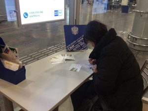 | 20 декабря все путешественники смогли бесплатно получить праздничную новогоднюю открытку и отправить её своим друзьям и родным. Специально для Дня пассажира Почта России подготовила 500 открыток и новогодних интерактивных марок. Правильно заполнить адресные строки на конверте, найти в случае необходимости индекс и наклеить марку пассажирам помогали сотрудники отделения почтовой связи.