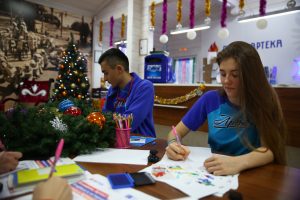 | В помещении «Почты Артека» разместилась штаб-квартира Деда Мороза, а почтовые комиссары Артека — участники программы «Дверь синего цвета» — на ближайшие два месяца превратились в волшебных почтальонов.