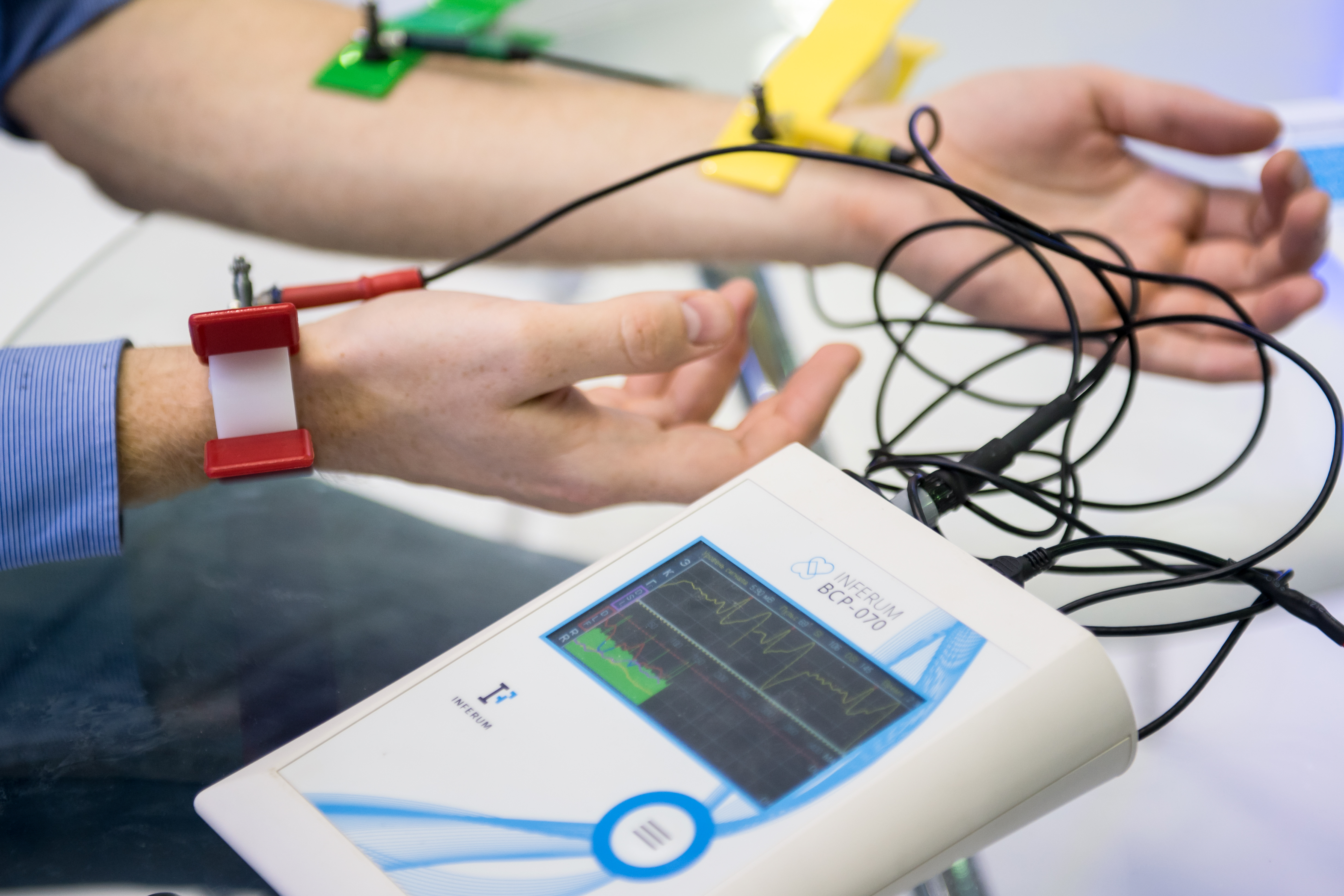 | Продукция «Швабе» представлена в объединенной экспозиции Радиоэлектронного комплекса Госкорпорации Ростех. Ключевой является интерактивная зона, где гости тестируют корректор артериального давления АВР-051 и комплекс автоматизированной оценки ЭКГ «Кардиометр-МТ», знакомятся с системой телемедицинской поддержки врачей стационаров, отделений реанимации и функциональной диагностики.