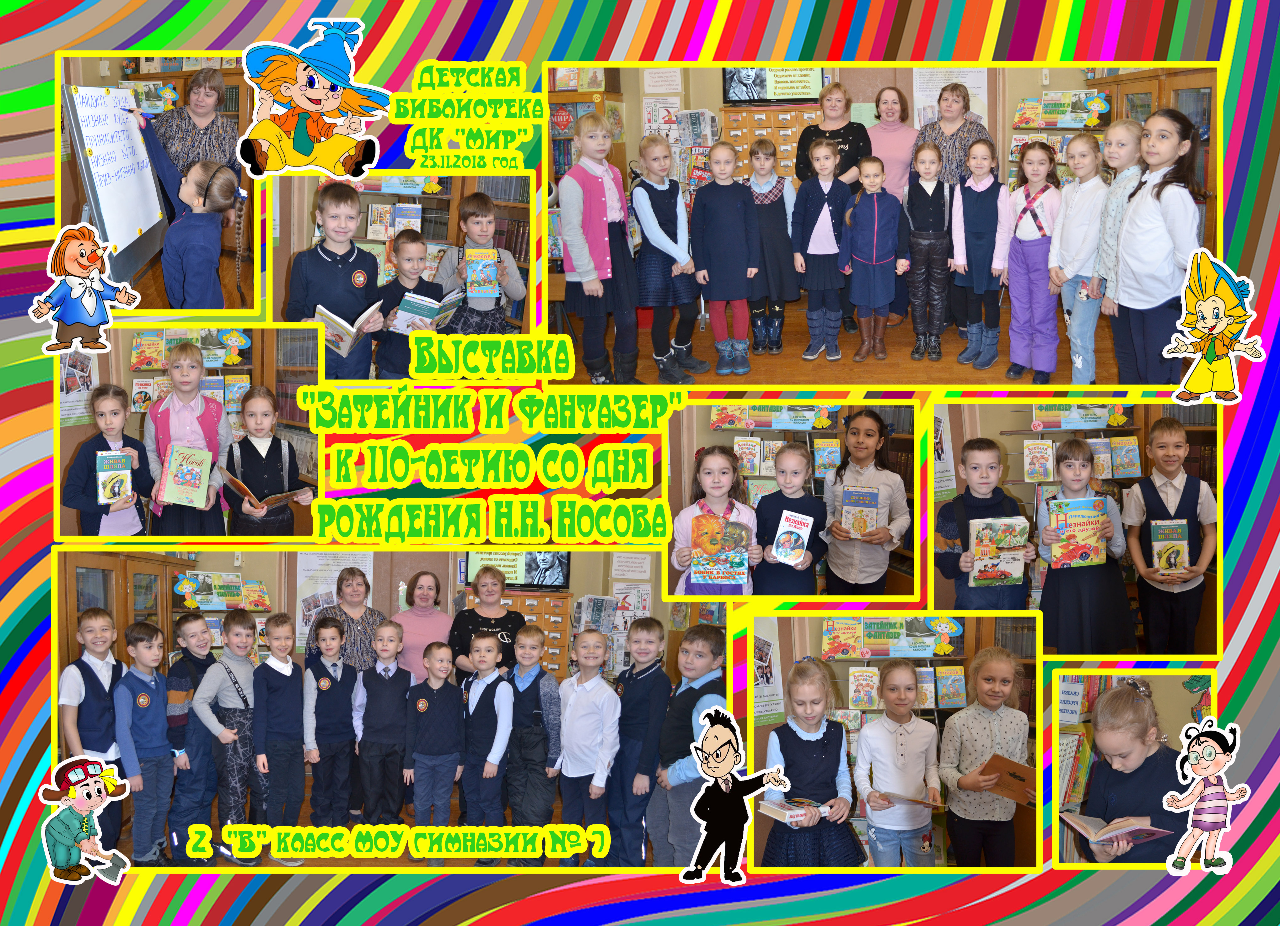 В день 110-летия со дня рождения Н.Н. Носова учащиеся 2 «В» класса МОУ гимназии №7 посетили городскую детскую библиотеку ДК «Мир». «Затейник и фантазёр» – под таким названием ребята совершили литературную экспедицию по его произведениям. Как же не вспомнить «Незнайку на Луне» или «Мишкину кашу», «Живую шляпу» и другие весёлые рассказы.