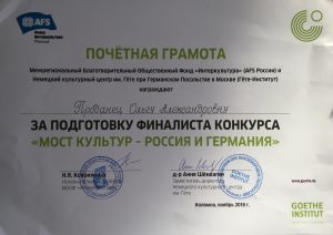 Успешное выступление Прощеваевой Дарьи ,учащейся МОУ гимназии №7на Всероссийском конкурсе по немецкому языку «Мост культур- Россия и Германия 2019»