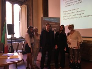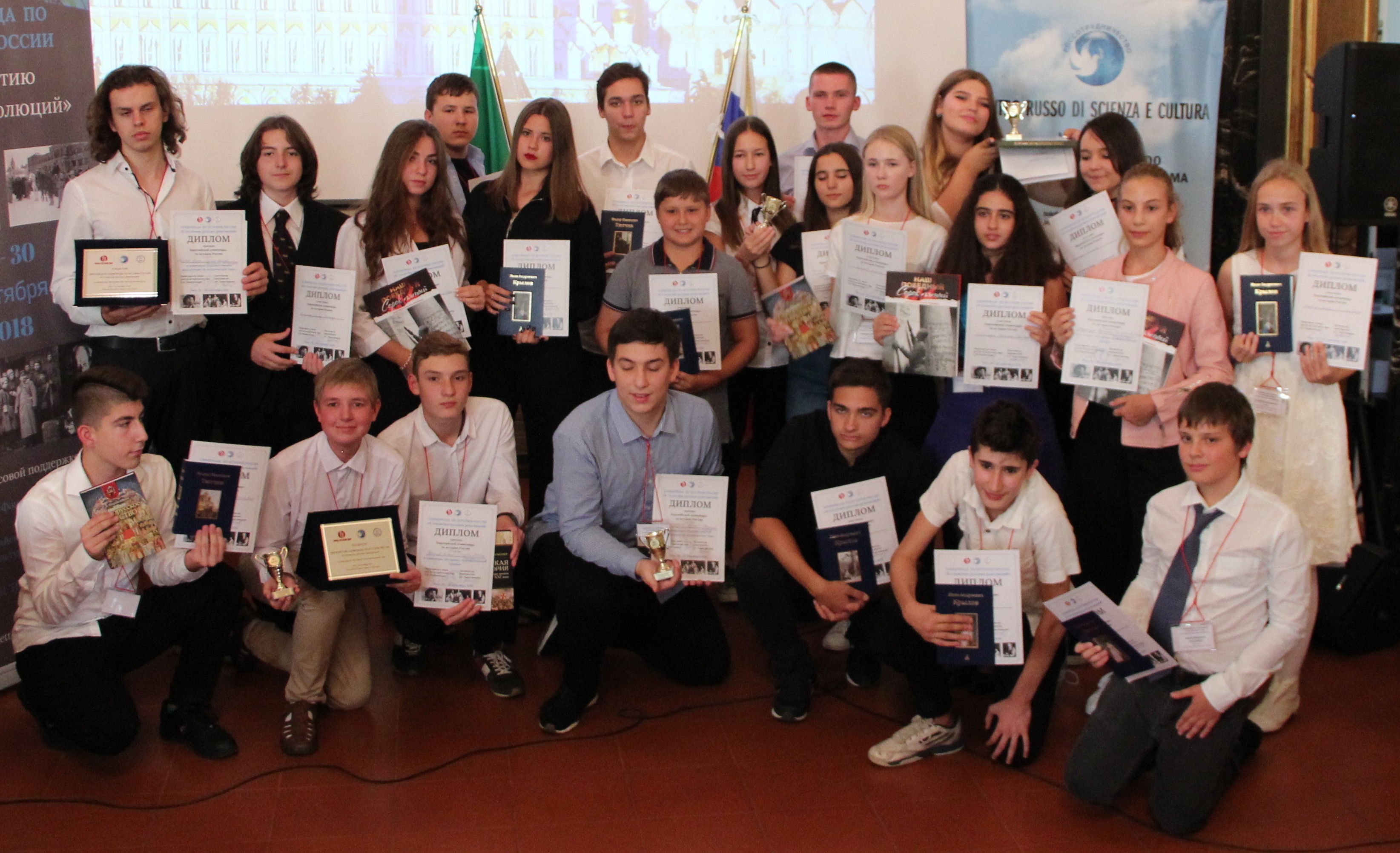 | Учащиеся МОУ гимназии №7, Прозорова Ольга и Дружинина Дарья со своим классным руководителем Смирновой А.А., приняли участие в финале IV Европейской Олимпиады по истории России «Творчество русских писателей в зеркале русской истории: по страницам произведений М.Горького и А.Солженицына» в Риме(Италия),организованной учебно-методическим центром по изучению русского языка и культуры «Николай Гоголь» в Риме при поддержке фонда «Русский мир» и Россотрудничества.