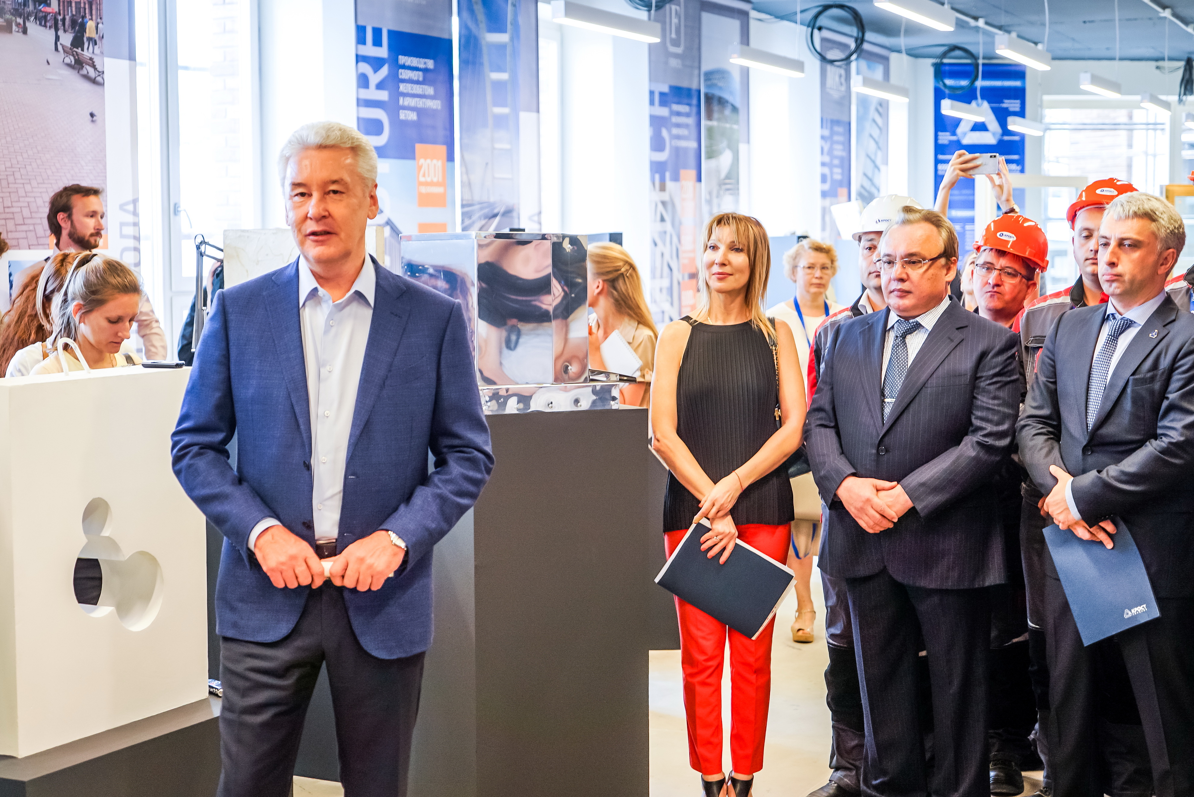 | 30 июля 2018 года кандидат на пост мэра Москвы Сергей Собянин посетил технопарк «Строительный» на севере Москвы, где встретился с трудовым коллективом концерна «КРОСТ», ознакомился с инновационными разработками промышленного комплекса Концерна и прогулялся по реконструированной набережной Головинского канала.