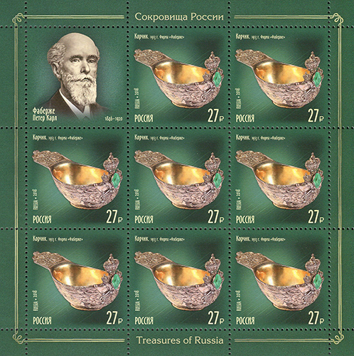 | 26 июля в почтовое обращение вышли марки, посвящённые знаменитым российским ювелирам: Карлу Фаберже, Павлу Овчинникову, Игнатию Сазикову и Ивану Хлебникову