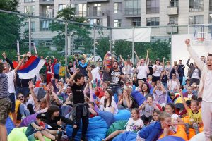 | В том, что это будет победа – не сомневался ни один из болельщиков жилых комплексов Концерна «КРОСТ», где в минувшее воскресенье были открыты фан-зоны для просмотра матча 1/8 финала Чемпионата мира по футболу! Более трех тысяч жителей ЖК «Новая Звезда», квартала Wellton Park, жилого комплекса ART – вышли во дворы для просмотра матча Россия-Испания, болеть за наших футболистов и вместе праздновать ПОБЕДУ!