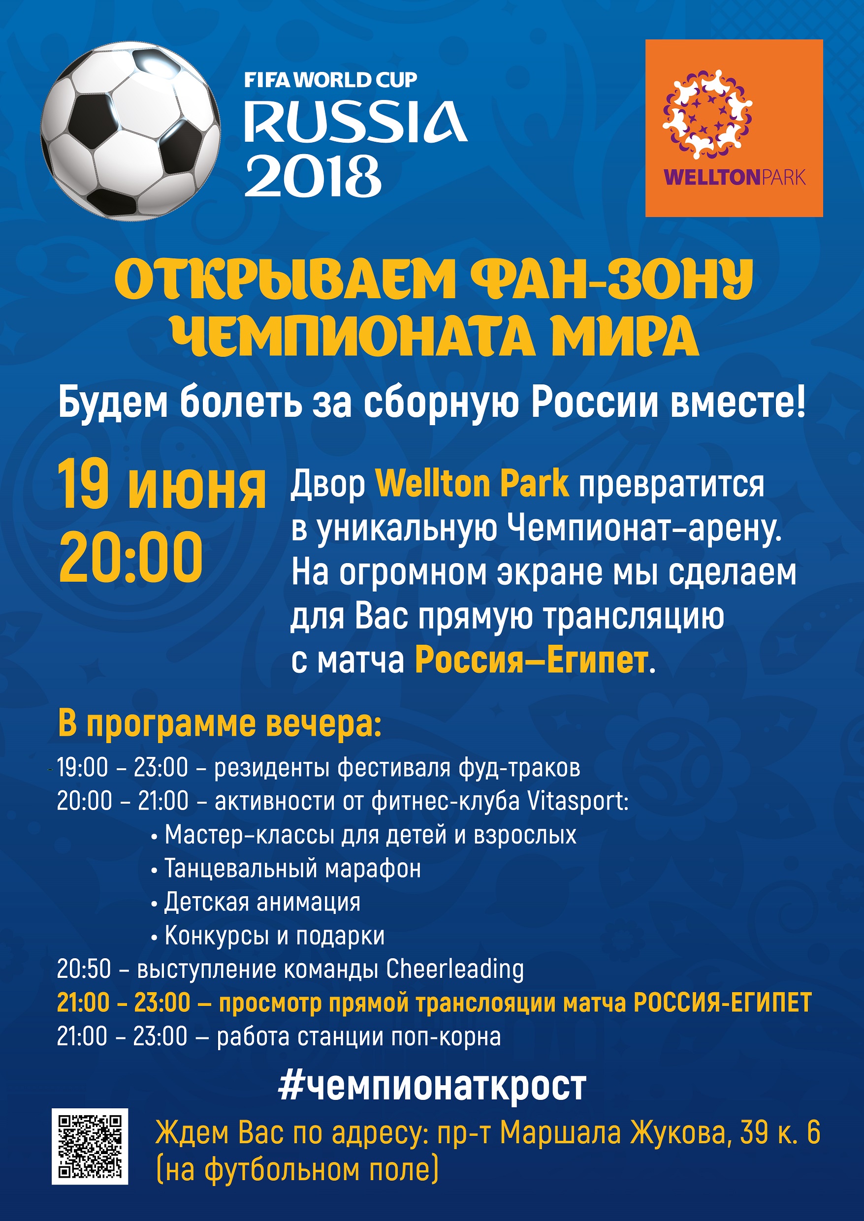 Концерн «КРОСТ» открывает фан-зону Чемпиона мира по футболу-2018. Приглашаем на просмотр матча Россия-Египет в Wellton Park.