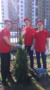 | Юнармейцы и старшеклассники МОУ гимназии № 7 приняли участие во Всероссийской эколого-патриотической акции «Лес Победы», которая проходила 12 мая 2018 года. У спортивного комплекса «Арена Лыткарино» ребята совместно с другими юнармейцами города высадили туи. Мероприятие проходило под руководством Главы города Лыткарино Е.В.Серегина и депутата Государственной Думы РФ В.А.Фетисова.