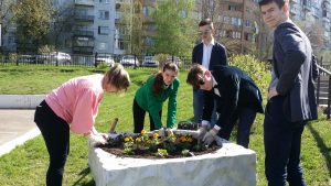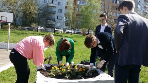 Посадка цветов на территории МОУ гимназии №7к 9Мая