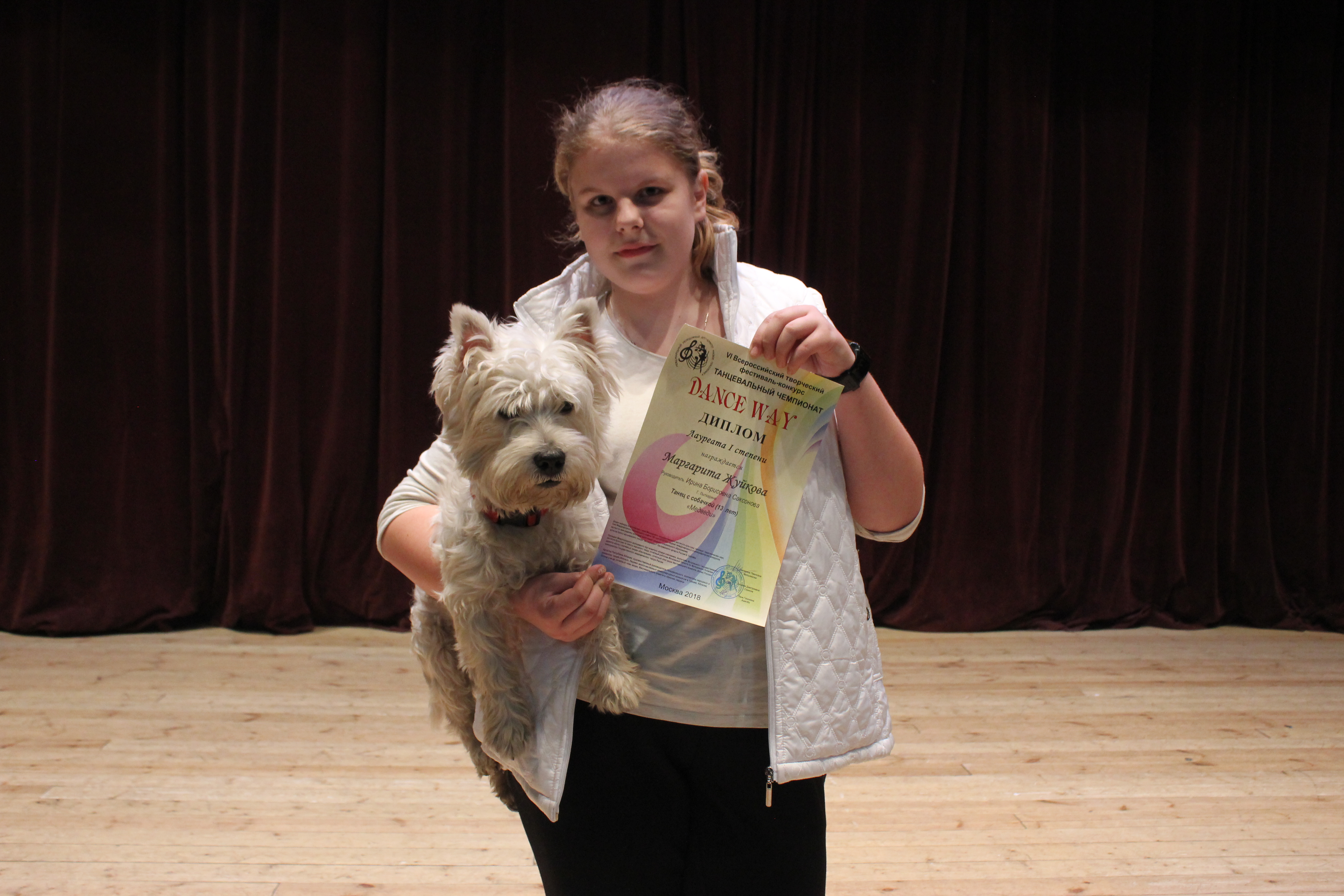 Участница клуба юных дрессировщиков под руководством Ирины Самсоновой «Дик» из ДК «Центр Молодёжи» — Маргарита Жуйкова завоевала звание Лауреата I степени на VI Всероссийском творческом фестивале-конкурсе «Танцевальный чемпионат Dance way».