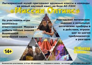 Приглашаем дружные команды пройти квест «Миссия Оптикс» в дни весенних каникул.