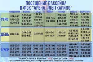 Расписание работы бассейна Арены «Лыткарино»