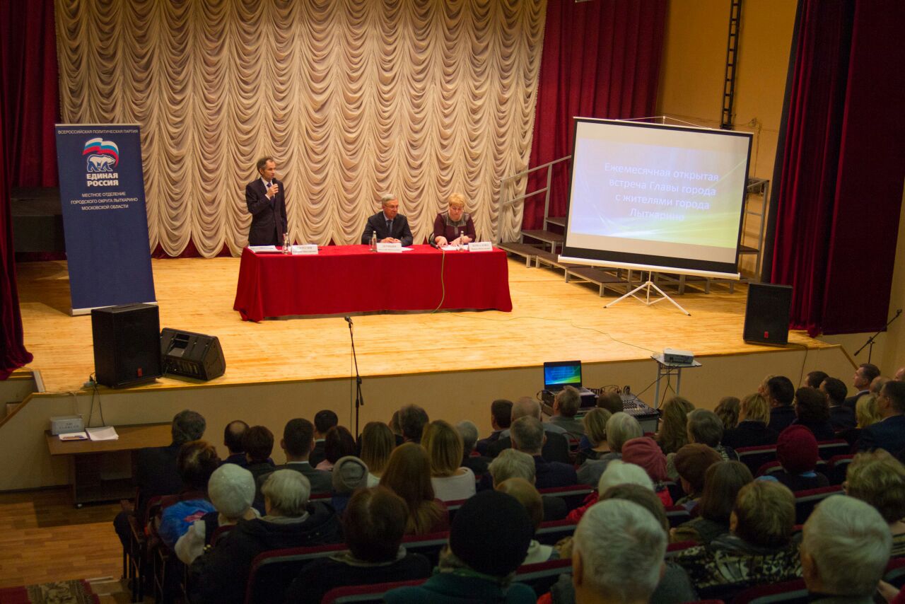 | Сегодня в актовом зале музыкальной школы состоялась традиционная встреча Главы города Евгения Серегина с населением. Основная часть мероприятия в этот раз была посвящена проблемам, связанных с общественным транспортом. Для оперативного решения всех проблем на встречу был приглашен Калинин Сергей Александрович — начальника управления пассажирскими перевозками автоколонны 1787, ГУП «Мострансавто». Обсудили отмену 538 маршрута «Лыткарино — Кузьминки», перенос последнего рейса маршрута 348 от станции Котельники на более позднее время и прочее. Также обсудили вопросы благоустройства, ЖКХ, сноса ветхих домов и прочие. #лыткарино #серегин