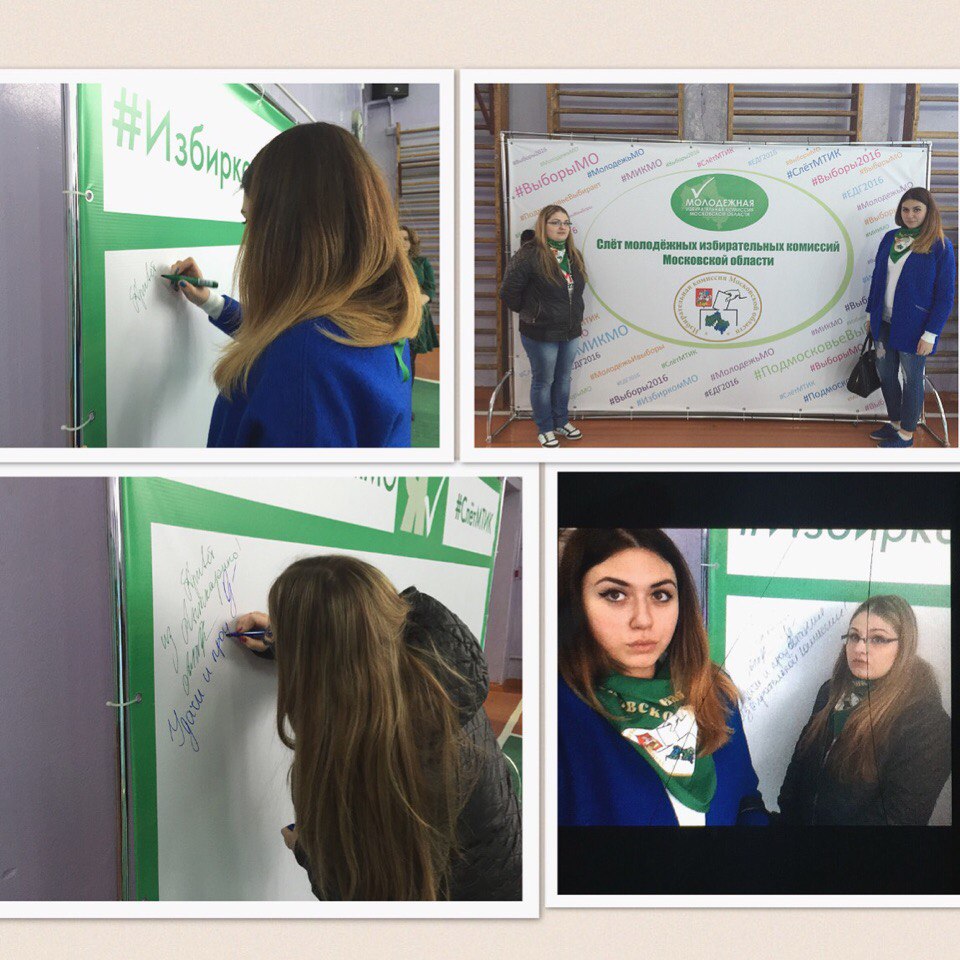 | 16 апреля 2016 г. в г.Орехово-Зуево состоялся слет молодежных избирательных комиссий Московской области, в котором приняли участие председатель молодежной избирательной комиссии города Лыткарино Одинокова Александра и секретарь комиссии Блинова Алина.