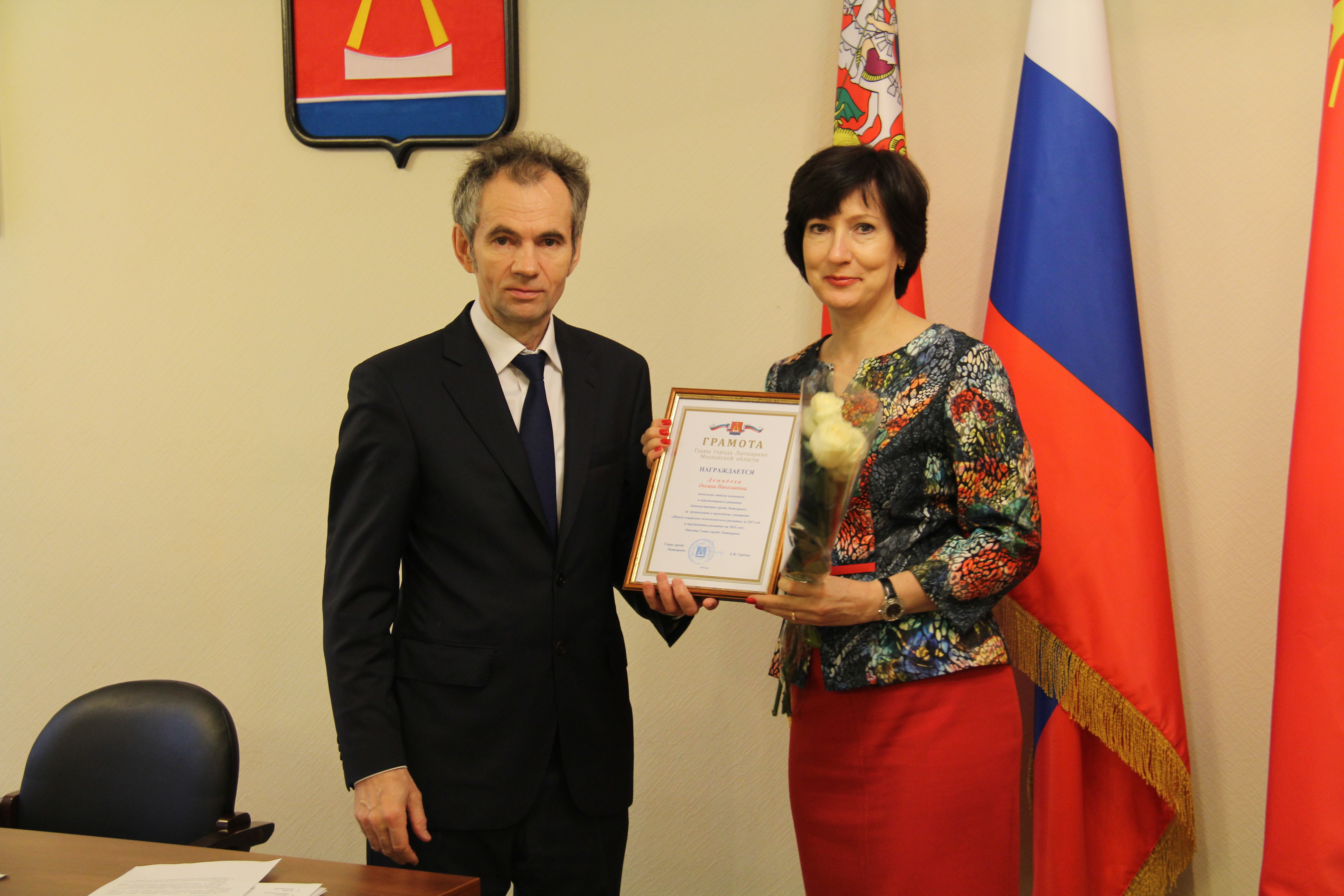 | 15 февраля в администрации Лыткарина Глава города Евгений Серёгин провёл торжественную церемонию награждения. За многолетний добросовестный труд и в связи с 50-летием со Дня рождения почетным знаком Московской областной Думы «За трудовую доблесть» была награждена Новоселецкая Светлана Германовна – консультант общего отдела Администрации города Лыткарино. За вклад в сохранение и развитие традиций православия и духовно-нравственного воспитания жителей города Лыткарино и в связи с 30-летием со Дня рождения Благодарностью Главы города Лыткарино был награжден Шередекин Иоанн Александрович – настоятель Храма Рождества Пресвятой Богородицы в селе Верхнее Мячково. Далее…