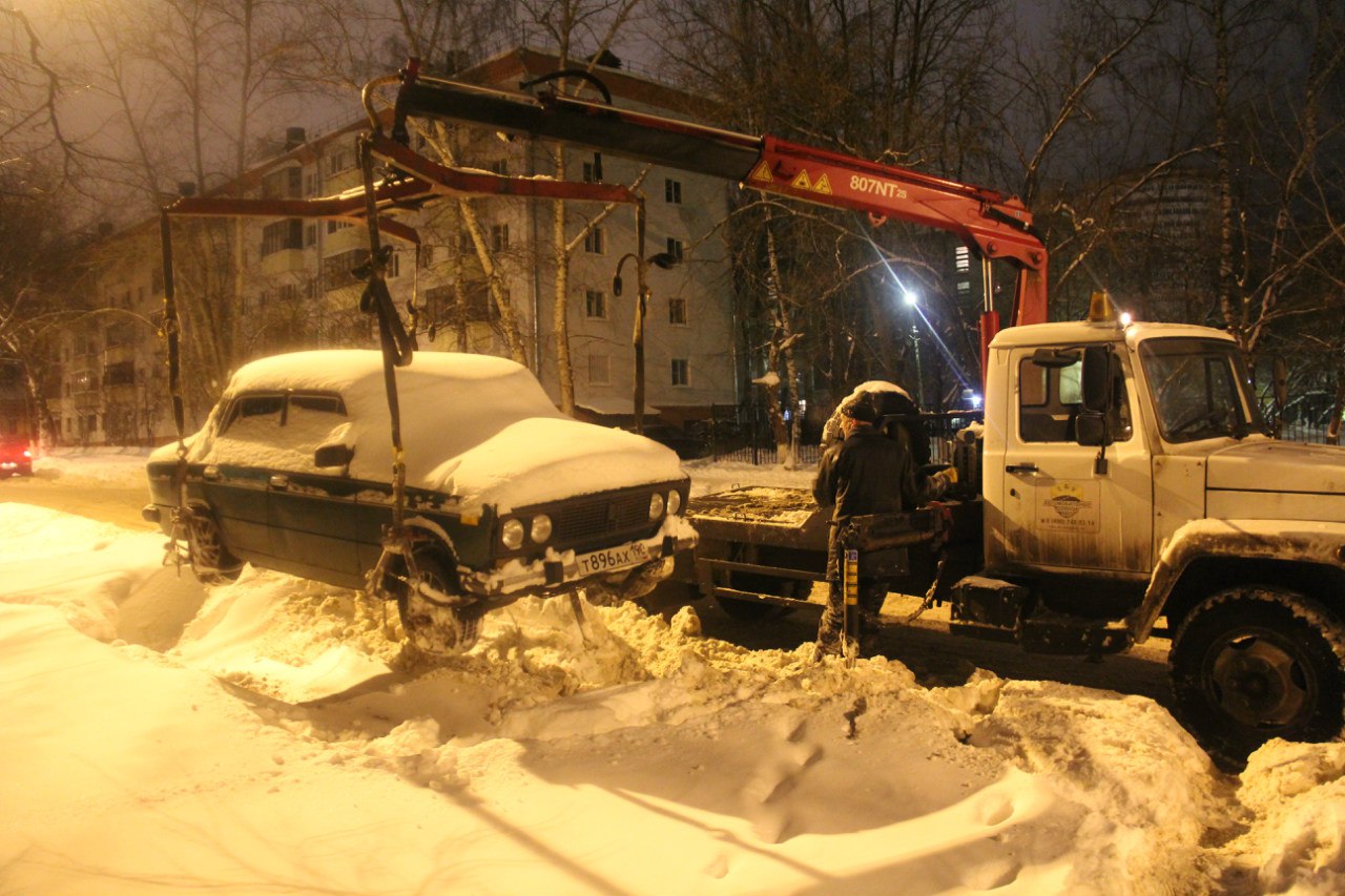 Первая эвакуация автомобилей с улицы Октябрьской