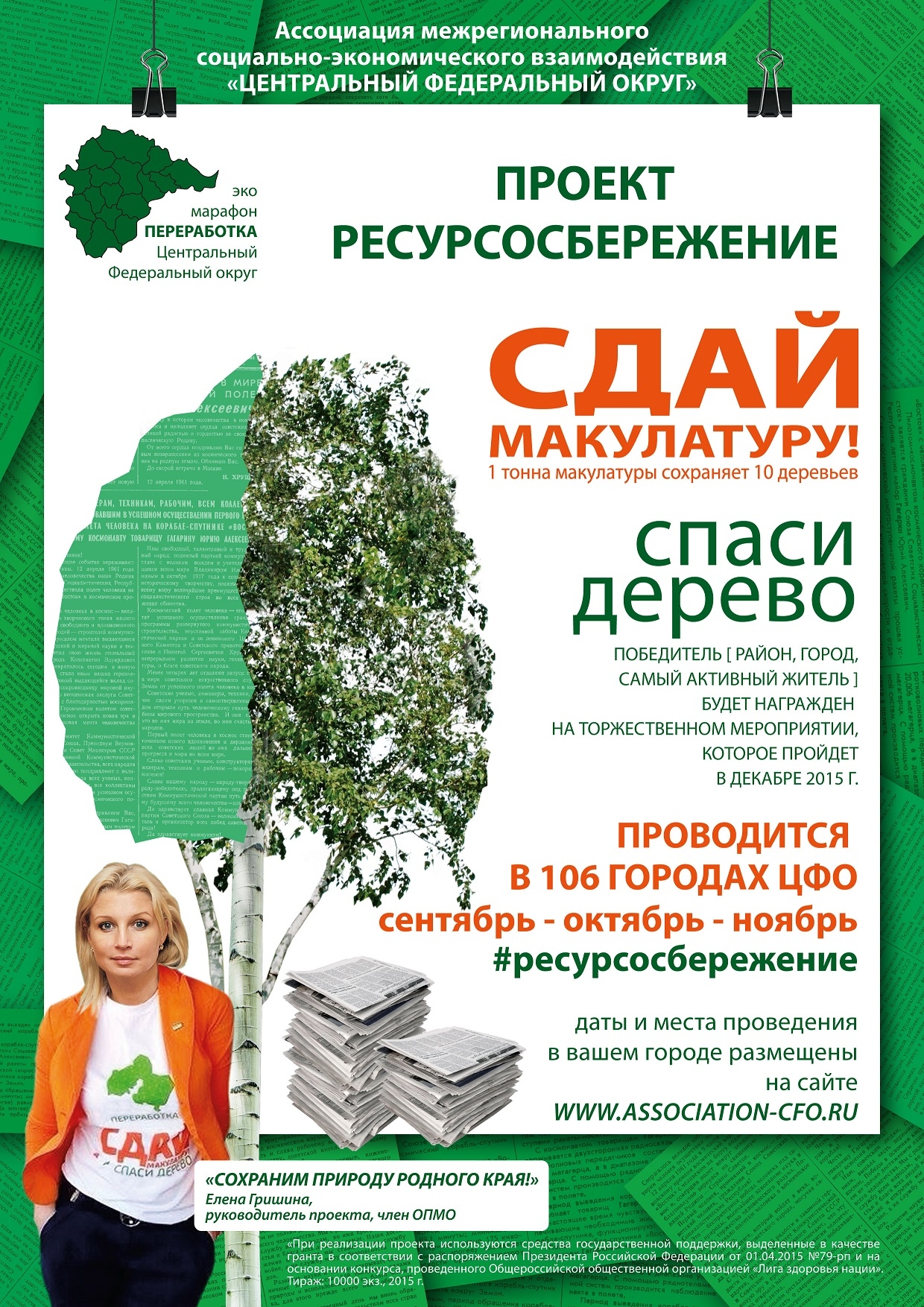 В Московской области 14 сентября 2015 года стартует акция Эко-марафон ПЕРЕРАБОТКА «Сдай макулатуру – Спаси дерево!»