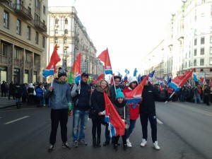 | Сегодня в Москве состоялось грандиозное шествие-митинг в честь Дня народного единства «Мы едины!». Такое чувство, как будто вся Россия объединилась в центре Москвы. Люди все прибывали и прибывали, к часу дня на Тверской улице было тяжело протолкнуться от Пушкинской площади в обе стороны. Не смотря на то, что на улице погода была ясная, 5 градусов тепла давали о себе знать, но это не помешало собраться всем вместе в этот великий день. Стоит отметить, что помимо представителей различных общественных организаций и парламентских партий на шествие пришли обычные люди, которые не имели никакой политической или общественной принадлежности. Многие пришли с семьями, кто – то пригласил на шествие своих друзей. Люди выстроились организованной колонной и ждали, когда же будет дан старт и колонна двинется. Далее…